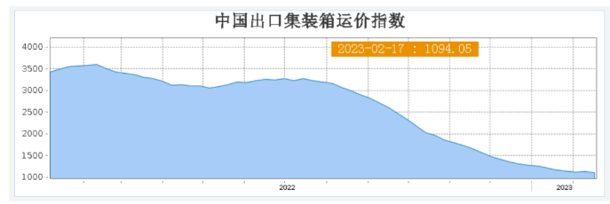 航运集装箱市场反映的是全球经济贸易的景气度。去年我国出口业务下滑明显,今年一开年各行各业都鼓足干劲,力求尽快恢复疫情前的辉煌。然而轰轰烈烈开工,国外订单却并没有纷至沓来。2021年全球海运需求飙升,运价高涨,港口拥堵严重,从中国出口的集装箱“一箱难求”。如今海运需求进入低点,运价下跌。从“一箱难求”到“船等货”,再到如今各大码头堆满空箱,海运从供不应求到过剩的周期转换比预想得要快,而大量新船还将在今年迎来集中投放。空箱堆积原因一方面是此前运价暴涨期间大量新的集装箱入市,供应倍增。(2021年全球生产了超过700万标准集装箱,是常规年份近3倍)。但究其根源还是全球贸易增速放缓导致需求收缩。海关总署数据显示,虽然中国2022年全年累计出口金额 3.6万亿美元,同比增长7%,但增速滑坡,且从11月就开始进入同比负增长,以美元计价,2022年12月中国出口额同比下降9.9%,创2020年2月以来的最大降幅。中国出口集装箱运价综合指数(CCFI)是集装箱运输市场价格变化的“晴雨表”。自2022年2月11日创下3587.91点历史最高点之后,一直下跌。2月10日,上海航运交易所发布最新CCFI指数为1133.10,比最高峰下降约68.42%。