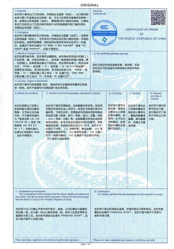 您现在所在的位置 : 首页 > 市府工作部门及下属单位 > 东莞市贸促会 > 互动 > 商法服务 > 国际商事认证 > 非优惠原产地证 > 一般原产地证