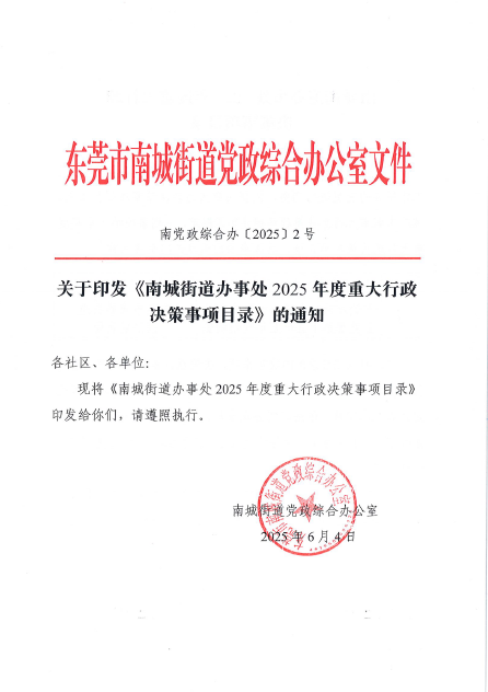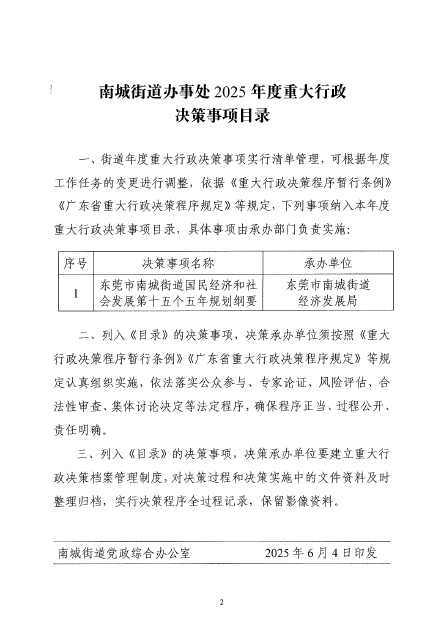 点击查看源文件:南党政综合办〔2025〕2号 关于印发《南城街道办事处2025年度重大行政决策事项目录》的通知.pdf