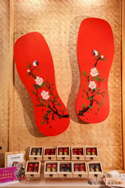 红漆描花传统木屐:红漆描花传统木屐制作技艺是东莞市第二批市级非物质文化遗产代表性项目。曾被广泛应用在东莞民间的喜庆大事,有着步步高升、一帆风顺、花开富贵、吉祥长寿等好意头。当前,位于东莞记忆首开区二期(大西路)的石龙红漆描花木屐化身“东莞战靴”,跟着东莞男篮出征粤BA赛场。