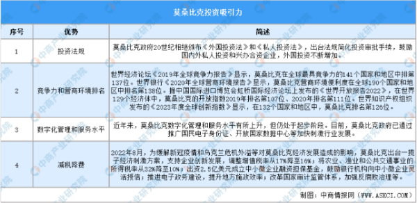莫桑比克位于非洲东南部,是东南部非洲内陆国家重要出海口和区域性交通走廊。自然资源非常丰富,天然气储量居全球第13位。相较周边其他国家和地区而言,莫桑比克一直保持着相对稳定的政治环境。据环球印象投资分析莫桑比克事业部发布的《2022-2026年后疫情时代莫桑比克投资环境及发展潜力报告》数据显示,尽管当前投资环境仍有改善的空间,但莫桑比克的经济发展潜力巨大,是投资者关注的热点。