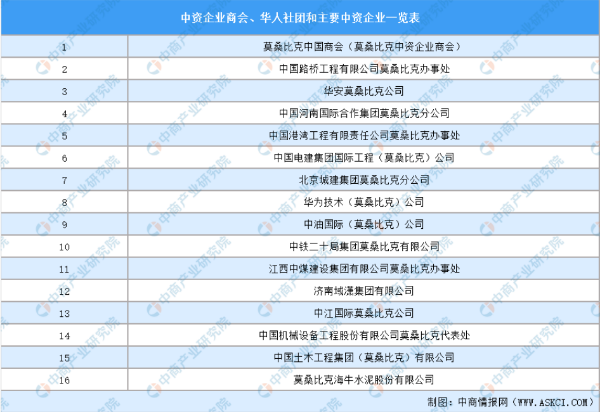 (八)莫桑比克中资企业商会、华人社团和主要中资企业一览表