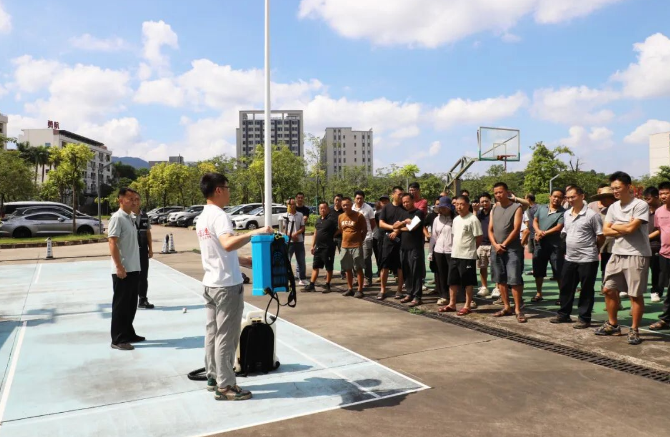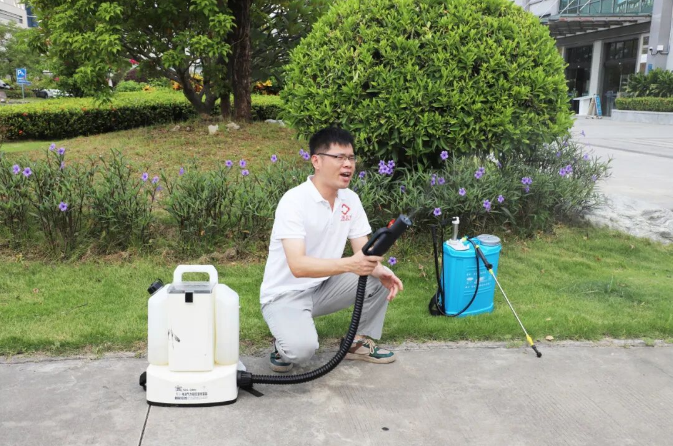 培训分为理论讲解和实操演练两个部分,专业技术人员详细讲解了登革热和基孔肯雅热的流行病学特点、传播媒介白纹伊蚊(俗称“花蚊子”)的生态习性、滋生环境以及药物消杀的科学原理。重点介绍了常用消杀器械(如超低容量喷雾器、常量喷雾器等)的操作规范、不同浓度消毒液的配比方法、喷洒技巧以及个人安全防护注意事项,并进行了现场实操演示。