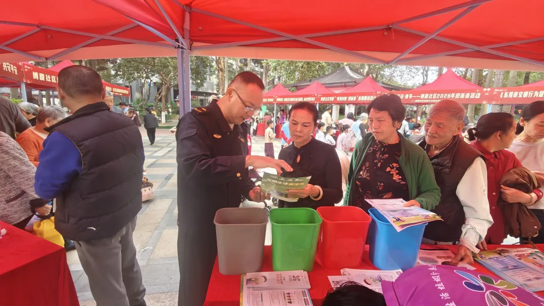 在富通自在城的游园宣传中,垃圾分类与新春氛围有机融合。工作人员通过互动小游戏、趣味科普等群众喜闻乐见的形式,用通俗易懂的语言讲解分类知识,在轻松热闹的氛围中普及环保理念,让居民在感受年味的同时,自觉养成垃圾分类好习惯。