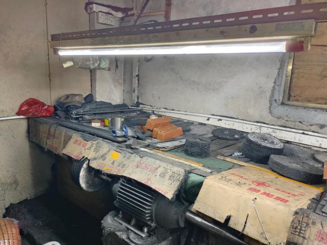 隐患情况:1、王某抛光加工点现场采用一条干式巷道式构筑物作为除尘风道打磨锌合金制品。