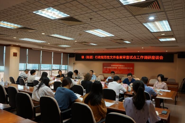随后在街道办事处召开试点工作座谈会,省人大常委会法工委调研组和市人大常委会法工委有关负责人,东城街道、石龙镇、清溪镇三个试点镇街进行了交流探讨。为进一步做好下阶段工作,调研组要求,夯实规范性备案审查基础,保障试点工作扎实有序开展;加强备案审查能力建设,不断提高工作人员的政治素质和专业能力水平;创新备案审查制度建设,挖掘培育先进典型;边试点边总结边推广,加快推进全市规范性文件备案审查工作。