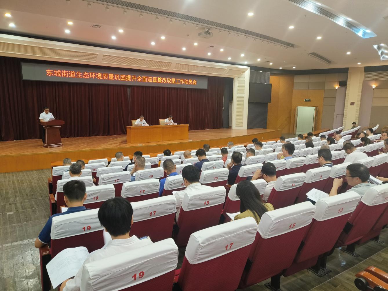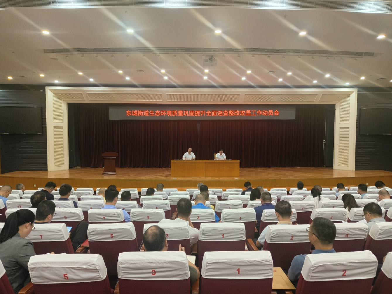 2024年11月5日,东城街道召开生态环境质量巩固提升全面巡查整改攻坚工作动员会,街道党工委副书记、办事处主任陈东成,街道办事处副主任袁沛霖,东莞市生态环境局东城分局、水务中心、城管分局等单位主要负责人及24个社区党委书记参加。