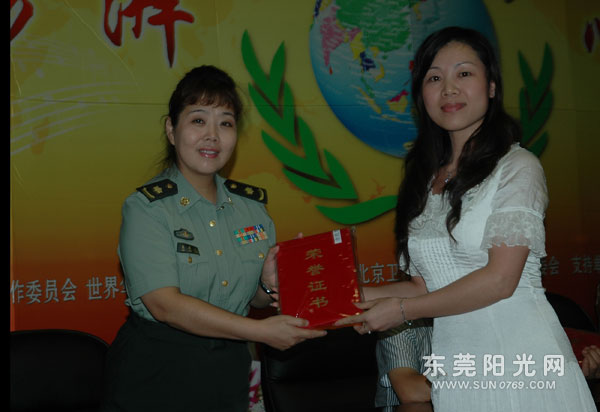 著名歌唱家朱晓红大校为李胜辉颁奖