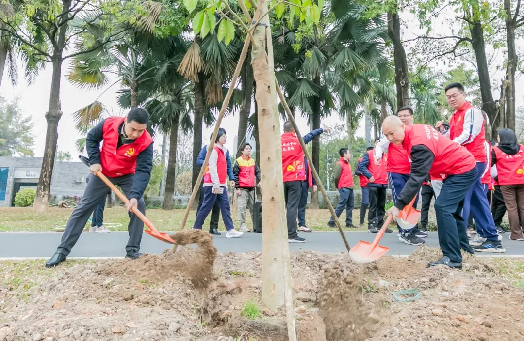 活动现场,党员干部们奋勇争先、干劲十足,他们分工合作、配合默契,挥锹铲土、扶正树苗、培实新土、灌溉浇水,每一道工序都做得认真细致,确保栽种一棵、成活一棵、绿化一片,现场一派热火朝天的景象。经过大家的共同努力,一排排白玉兰、水蒲桃、大花紫薇、黄花风铃木、小叶紫薇等树苗迎风挺立,焕发着勃勃生机。本次活动共计种植树木约120棵,通过党建引领植绿护绿行动,营造全民参与植绿护绿浓厚氛围。