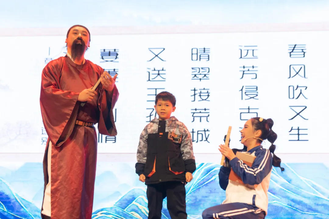 《赋得古原草送别》《春夜喜雨》《声声慢》《白发白帝城》……现场,当熟悉的诗词响起,观众们不由自主地跟着吟诵起来,沉浸式感受唐诗宋词的魅力。