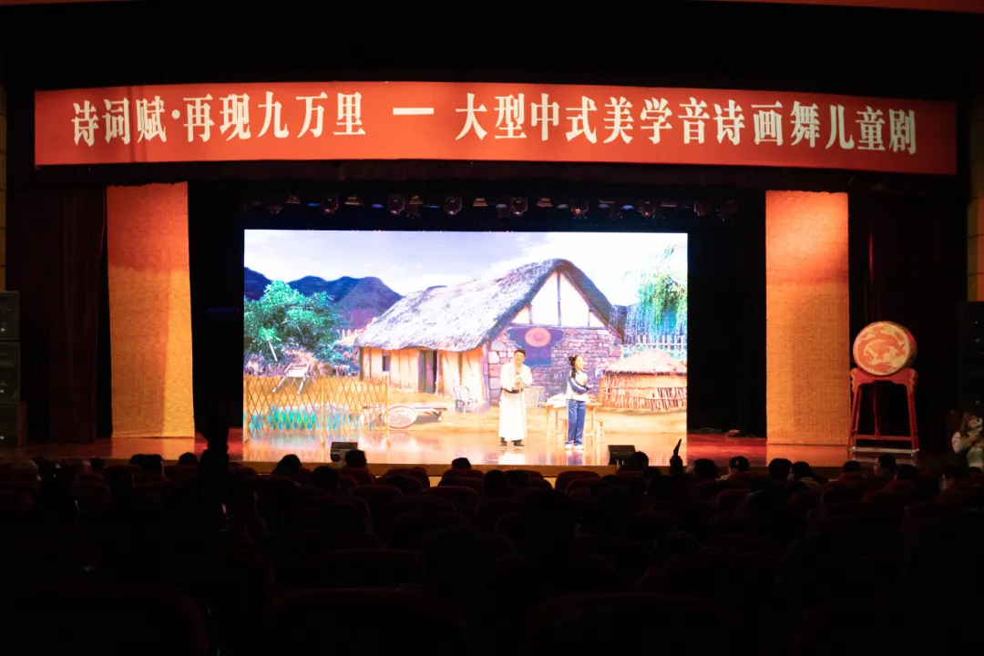 1月11日晚,文化周末剧场内响起了琅琅诗词声。原来是“诗词赋 · 再现九万里——大型中式美学音诗画舞儿童剧”正在文化周末剧场上演。作为“湾区周末IN东莞”首站莞城city walk路线的活动之一,数百名观众齐聚一堂,fun享周末!