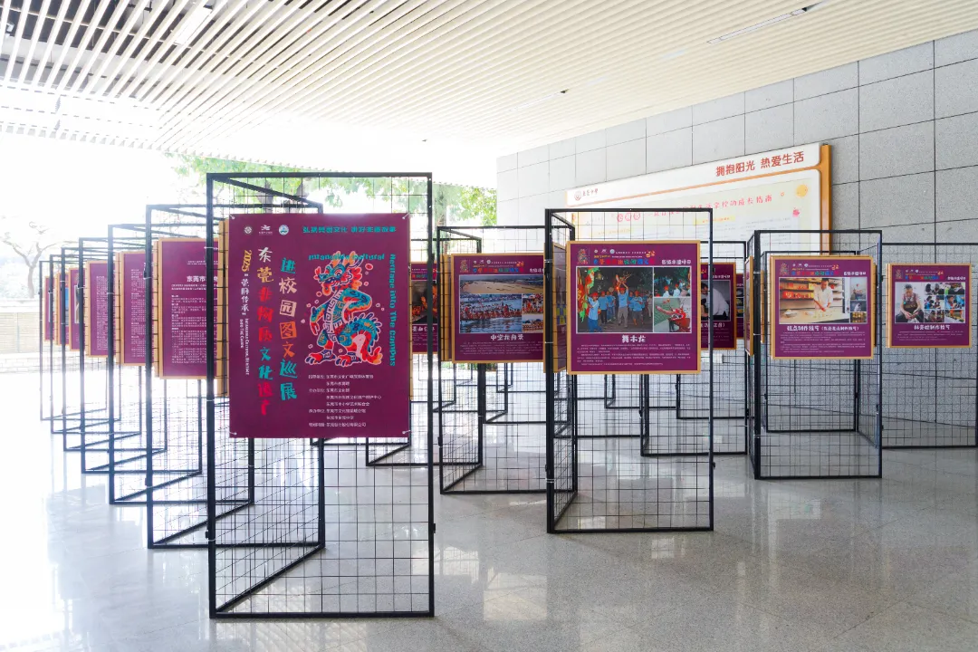 据悉,本次展览将持续一周,内容涵盖东莞的国家级、省级、市级非遗项目,通过展板、图片和文字相结合的形式,生动直观展示了东莞千角灯、龙舟制作技艺、樟木头舞麒麟、木鱼歌、赛龙舟、麒麟制作、莞香制作技艺、寮步香市、茶园游会、莫家拳等多种代表性非遗内容,勾勒出东莞丰富多彩的文化图景,使师生直观体会到传统技艺所承载的历史与匠心。
