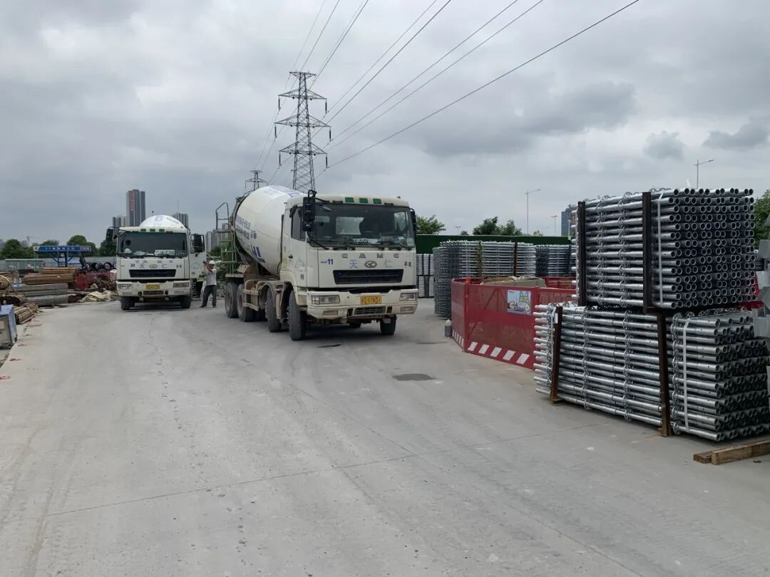 在现场,小编看到工人们严格做好施工安全防护紧张有序地施工作业车辆穿梭不停现场一片繁忙景象