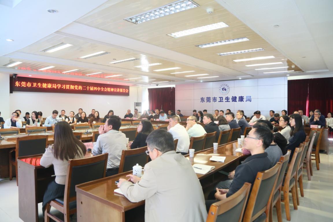 为深入学习贯彻习近平总书记视察广东和出席第十五届全国运动会开幕式重要讲话重要指示精神与党的二十届四中全会精神,12月17日下午,东莞市卫生健康局举行学习贯彻党的二十届四中全会精神宣讲报告会。市局领导、各科室负责人、全体党员干部,直属单位领导、中层干部等参加。