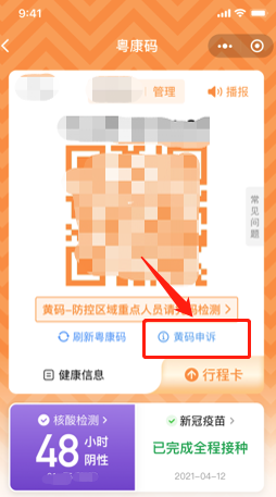 如有申诉,可以点击粤康码中的“申诉”,了解申诉途径。