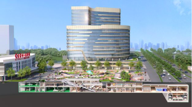 ▲市人民医院TID项目剖面图,地下两层空间连接地铁出入口。