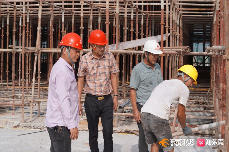 在位于茶山镇塘角村的箭冠总部建设工地上,60多名工人在各自的岗位上忙碌着。项目负责人陈亚尾带着管理层如常检查工地每个节点是否到位、施工现场是否安全。