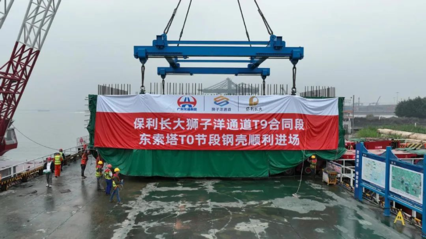 作为粤港澳大湾区的超级工程,狮子洋通道的建设备受关注。近日,该项工程取得重大进展。狮子洋大桥东索塔T0节段钢壳顺利吊装进场。