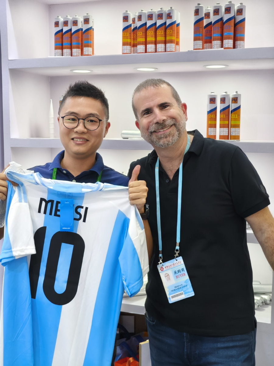 同样是“老广交”的广东普赛达密封粘胶有限公司,今年广交会也收获了“新朋友”——“有几位客户现场下了订金,还有一位阿根廷客户还给我们送了签名的球衣,非常热情。”公司销售总监黄俊权表示。