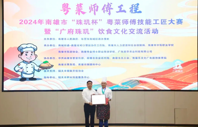 由南雄市人民政府和东莞市南城街道办事处共同主办的2024年南雄市“珠玑杯”粤菜师傅技能工匠大赛暨“广府珠玑”饮食文化交流活动,10月28日在南雄市中等职业学校顺利举行。南雄市委书记柯建忠等领导嘉宾出席活动。 本次活动以“粤菜师傅”工程“小切口”解决就业“大问题”、满足民生“大需求”、促进产业“大发展”,扎实推进东莞南城——韶关南雄对口帮扶协作,促进东莞、南雄两地人文交流。 此次粤菜师傅技能工匠大赛竞赛项目为中式烹调师,选手须在150分钟内独立完成规定菜肴、指定主料菜肴、自选热荤菜肴和地方风味小吃(以糯米粉或粘米粉为主料)4道作品。 活动吸引南雄市18个镇(街道)共70名选手参赛,他们精心制作了257道美食佳肴,展现了南雄饮食的独特魅力。 活动还邀请名厨现场制作“广府珠玑”客家宴席,设立美食体验区展出10款地道小吃,公布南雄“韶州客家菜”特色店、特色美食,并集中展示近年来培育的“粤菜师傅”高技能人才成果,全面展现粤菜文化的多元魅力与深厚底蕴。 经过激烈角逐,比赛共产生一等奖1名、二等奖2名、三等奖3名以及优胜奖27名。颁奖仪式上,领导嘉宾为本次比赛获奖选手颁发了牌匾、奖章、证书等。