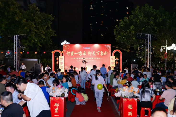 11月1日,鸿福社区恒大御景苑举行第三届百家宴暨文艺晚会,超400名社区群众以及物业管理人员齐聚一堂共赴“家宴”。