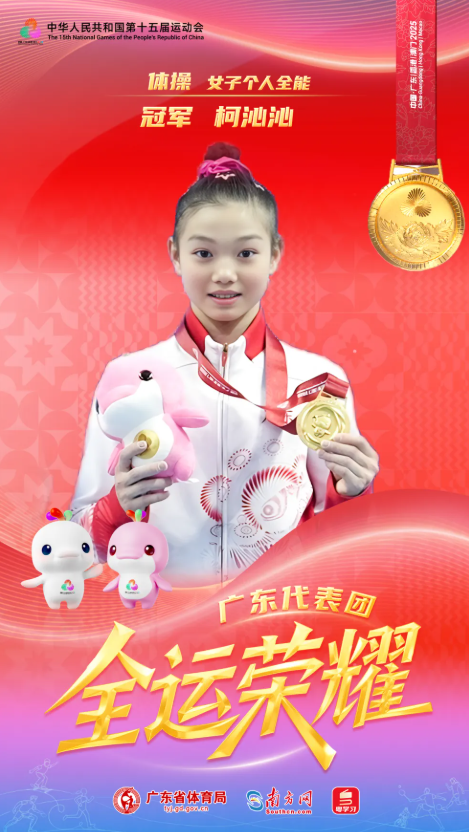 11月15日,十五运会体操成年组女子个人全能决赛在肇庆上演。广东队柯沁沁不负众望,取得成年女子体操全能冠军。这不仅是柯沁沁个人,在十五运会女子个人全能的“双料冠军”(青年组和成人组),还是广东体操队成年组首枚金牌!