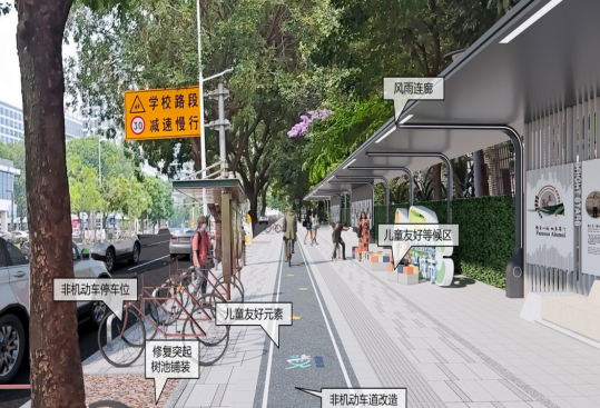 针对南城阳光第五小学、南城阳光第四小学等学校周边高峰期拥堵,南城将实施“一校一策”综合治理,立体化改造绿化带、优化道路断面等,并增设家长等候区、风雨连廊,为学校周边提供专用的接送落客区域和安全缓冲空间。