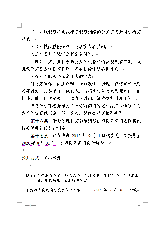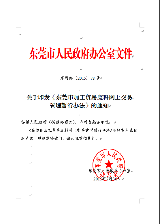 关于印发《东莞市加工贸易废料网上交易管理暂行办法》的通知