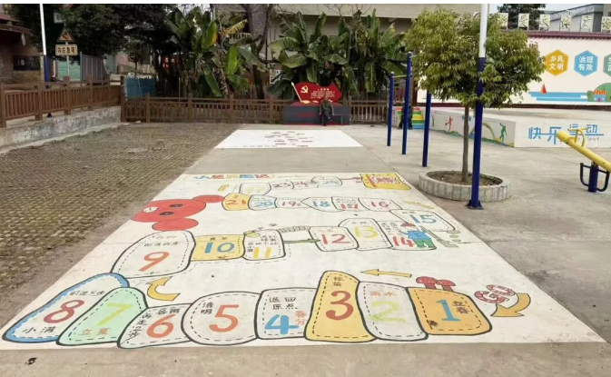 改变,也在文化的浸润中生根。在崇化村,工作队的巧思让乡村风貌与育人功能相结合。他们将闲置空地打造成富含客家风情的“四小园”和文化长廊,一面“趣味客家话墙”成为孩子们学习方言的乐园。更巧妙的是,他们将红色教育融入游戏,在地上绘出“红军长征路”跳格子和“科技强国梦”飞行棋,让家国情怀在欢声笑语中扎根。