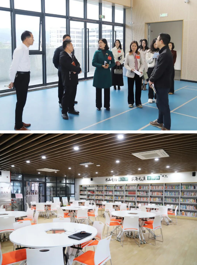 人大代表一行先后前往学校保安室、教学楼、图书室、食堂、学生宿舍、体育馆等重点区域,实地查看校园环境、教学设施及后勤保障情况,分别听取了学校负责人对开学工作、校园安全、食品安全、住宿管理等方面的介绍,重点了解了开学嘉年华活动、安保措施落实、学习环境优化、食堂智慧监控系统运行及住宿环境等情况,并详细询问学校在办学过程中遇到的困难和问题。