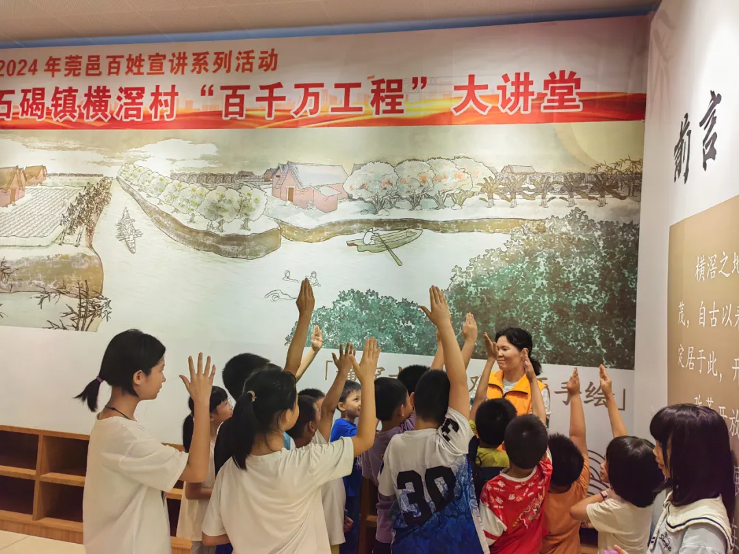 “‘百千万工程’是广东省高质量发展的‘头号工程’,也是推动横滘村实现高质量发展的必由之路。”横滘村连开2场“百千万工程”大讲堂活动。该村的社工主任、莞邑百姓宣讲员王沙沙为辖区儿童青少年带来了别开生面的宣讲,并组织大家一同参观村史馆、党建公园、中心公园等地。