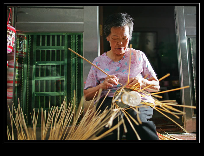解放前的石龙,每逢中秋佳节,小孩子就唱着“游鱼游沙碌(灯笼),添油添蜡烛”的童谣,手提着灯笼仔,到油烛店领取免费派送的蜡烛。我镇泗洲村家家编织灯笼仔,因而闻名于东(莞)、增(城)、博(罗)的。编织灯笼仔,是泗洲的传统工艺,据说有几百年的历史。因为,泗洲村的妇女心灵手巧,人人都会编织灯笼仔,除了种田、带小孩、主持家务外,有空就编织,1小时可编织六、七个,快者多达10个。一般家庭1年可编织五、六千个、多者上万个。编织灯笼仔的材料,选用丹竹,篾细如丝,要放在铁桶里煮几个小时,然后取出晒干,这样才不易折断。灯笼仔像个小冬瓜,中间贴上一层透明的玻璃纸及古代人物的图案,上下画有花纹,底部用铁丝串起来穿过灯笼,既可点蜡烛,也可作提手之用。这样灯笼仔就制成了。在过去,泗洲的家家户户都放满了灯笼仔,中秋节前一、两月,各地客商鱼贯而至,落户采购。因为,在东、增、博一带有这样的一个习俗,每年的中秋节前,外婆都要买这样的灯笼仔和糕点送给外孙,以示前路光明,步步高升,大有前途。因此,灯笼仔成为中秋的应节必备佳品。所以,泗洲的妇女,每天吃饭后,拿着小板凳及一捆篾丝,围坐在一起,有说有笑地编织灯笼,手艺一代传一代,泗洲就成为了有名的灯笼村。解放后,特别是改革开放以后,人民生活改善,旧俗渐渐消除。而且随着朝代的进步,科技的发展,各式各样纸叠的、塑料的、吹气的、带电珠的、会唱歌的、会走路的灯笼应运而生,款式新颖。现在,中秋佳节仍是非常热闹。虽然灯笼仔的销路大不如前,但仍有一些市场。据了解,还有七成的妇女在继续编织灯笼仔,延续着泗洲灯笼村的历史。看到一位80岁高龄的老太婆,坐在门前编织,而且非常手巧。还一些妇女经常从家里两手拿着一串长长的灯笼走了出来,放到客商前来购买灯笼的汽车上。还有不少人家里的大厅,挂着一串串用绳子连起来的灯笼,这也许是泗洲村的一大景观吧!现在随着改革开放的前进步伐,农村也逐渐城市化了。村民已经“洗脚上田”,不少人进工厂、做生意,家庭主妇也时髦起来,有的也年青妇女也不愿学这手艺了。
