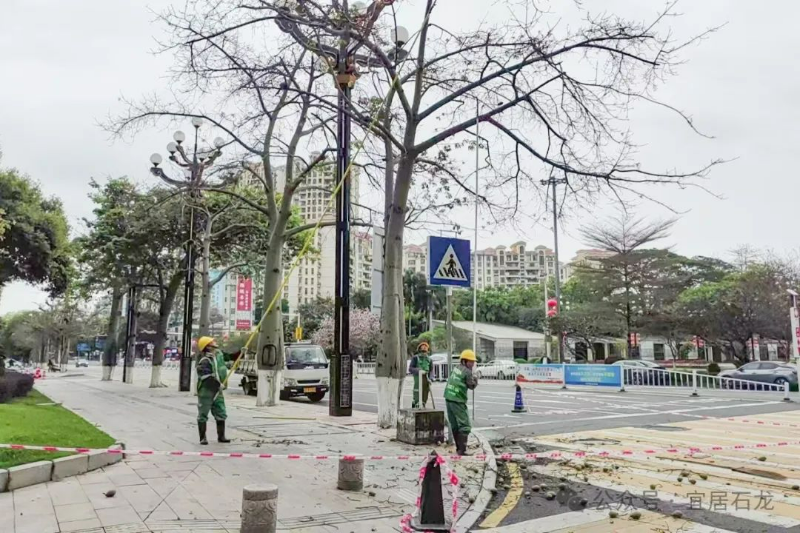 在绿化树木维护方面,石龙城管分局组织专业绿化养护队伍,对全镇主次干道、公园、广场等区域的树木进行全面排查,仔细检查树木的生长状况,修剪清理枯枝、病枝以及可能在大风中折断的树枝。针对高大树木,绿化工人借助高空作业车,对其树冠进行合理疏剪,在保持树木美观的同时,进一步增强其抗风能力。3月10日至27日,石龙城管分局共修剪树木600余株,清除病危树木8株,加固树木125处,及时消除可能因树木倒伏引发的安全隐患。