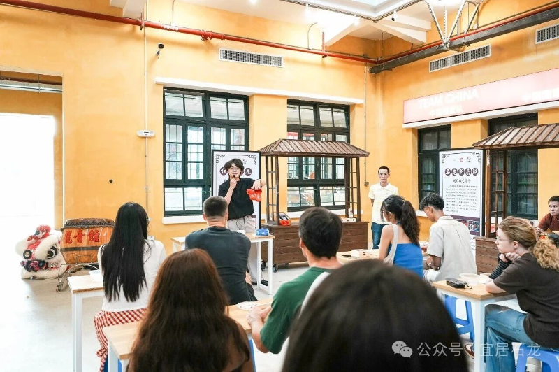 目前,石龙拥有市级以上非遗项目11个,总量位居东莞市第二,在此基础上打造的“东莞非遗第一街”也成为展现非遗及传统文化魅力的重要窗口。当天,活动为留学生在举重博物馆一楼设置非遗展示空间,邀请新昌鼓、醒狮、红漆描花传统木屐等非遗项目现场展销,带领采风团感受石龙非遗魅力。在舞狮队员的指导下,一名留学生敲响新昌鼓,另一名则穿戴上醒狮头,在有节奏的鼓点中舞动起来,欢乐喜庆的气氛感染了全场。