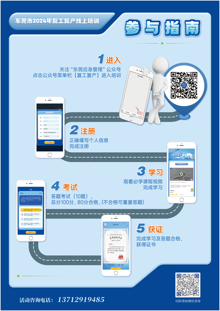 企业要认真组织开展全员安全生产教育培训,提高员工安全意识和技能。一是积极动员全体人员参与市应急管理局组织的安全生产云培训,关注“东莞应急管理”公众号——应急互动——复工复产培训,进入观看《东莞市安全生产线上培训复工复产篇》,观看必修学习视频完毕后,进行答题测试,完成10道相关测试题,做到“全员、全面、全过程”的安全生产教育,确保100%受训受教育。二是针对节后员工精神松懈、人员流动大、新招员工多等特点,认真自行组织开展一次全员安全生产教育培训,特别是对新进员工和调换新岗位的员工要严格落实厂、车间、班组“三级”安全教育培训,严格培训考核,切实做到“不培训不上岗,培训不合格不上岗”。对其他返岗人员尤其是特种作业人员按规定进行岗前再教育再培训,务必使每位员工具备必要的安全生产知识,熟悉岗位安全生产操作规程,掌握安全生产基本技能。