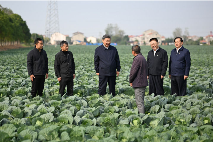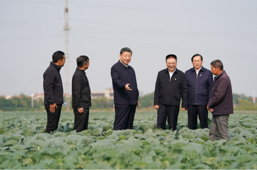5日上午,习近平前往咸宁市嘉鱼县,首先到潘家湾镇十里蔬菜长廊考察。深秋时节,这里仍然满目青翠、生机勃勃。习近平走进田间,察看蔬菜长势,详细询问蔬菜品种、种植技术、销售等情况。他强调,农村天地广阔,农业大有可为。发展现代农业,建设农业强国,必须依靠科技进步,让科技为农业现代化插上腾飞的翅膀。他勉励当地干部群众走科技之路、质量之路、品牌之路,把蔬菜种植这个富民产业进一步做好,让更多群众增收致富。