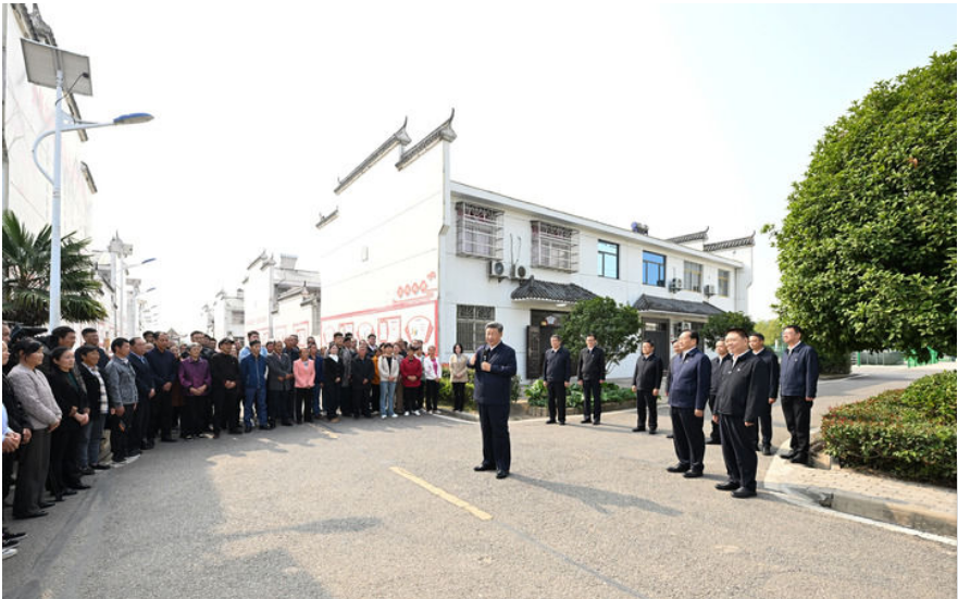 11月4日至6日,中共中央总书记、国家主席、中央军委主席习近平在湖北考察。这是5日上午,习近平在咸宁市嘉鱼县潘家湾镇四邑村考察时,同村民们亲切交流。新华社记者 谢环驰 摄
