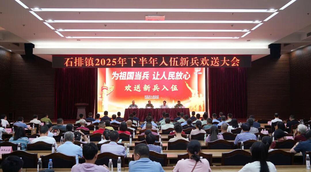 旌旗猎猎映初心,壮志凌云赴军营。近日,石排镇2025年下半年入伍新兵欢送大会在石排镇政府一楼大会议室隆重举行。石排镇党委副书记、武装部部长李松顺,镇领导赖李钦、钟伟发,武装部相关人员、入伍新兵和家属代表、2025年秋季退役士兵参加欢送大会,共同为即将踏上军旅征程的青年们送行,见证他们身披荣光、奔赴国防一线的重要时刻。