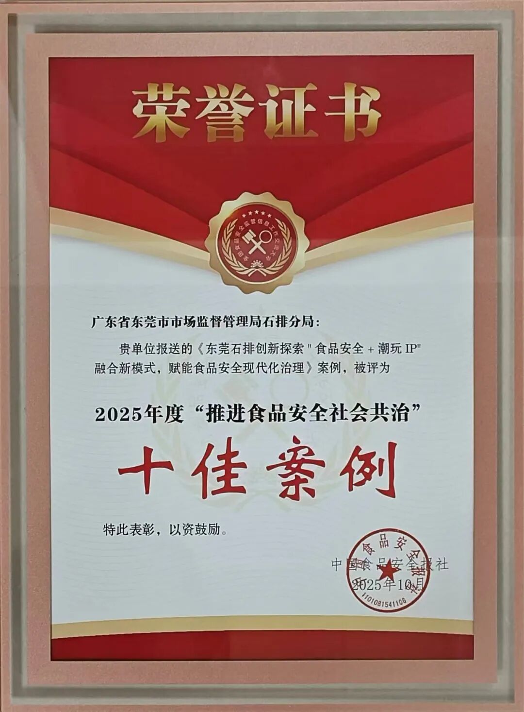 近日,第十二届全国食品安全监管信息工作交流大会暨全国食品产业高质量发展大会在新疆乌鲁木齐隆重举行。本次大会由中国食品安全报社与新疆维吾尔自治区市场监督管理局联合主办,以“强化食安监管信息互联共享,赋能食品产业高质量发展”为主题。石排市场监管分局报送的《东莞石排创新探索“食品安全+潮玩IP”融合新模式,赋能食品安全现代化治理》案例荣获2025年度全国“推进食品安全社会共治”十佳案例,并作为获评单位在会上就食品安全监管工作进行交流发言。