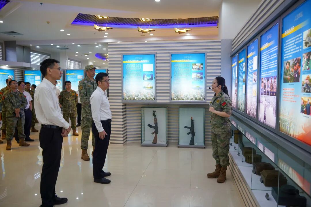 在国防教育展厅,参加人员认真聆听讲解,通过珍贵的历史图片、装备模型及文献资料,系统了解了我国国防事业的建设发展历程与新时代取得的科技成就,深刻领悟到加强国防建设的极端重要性。