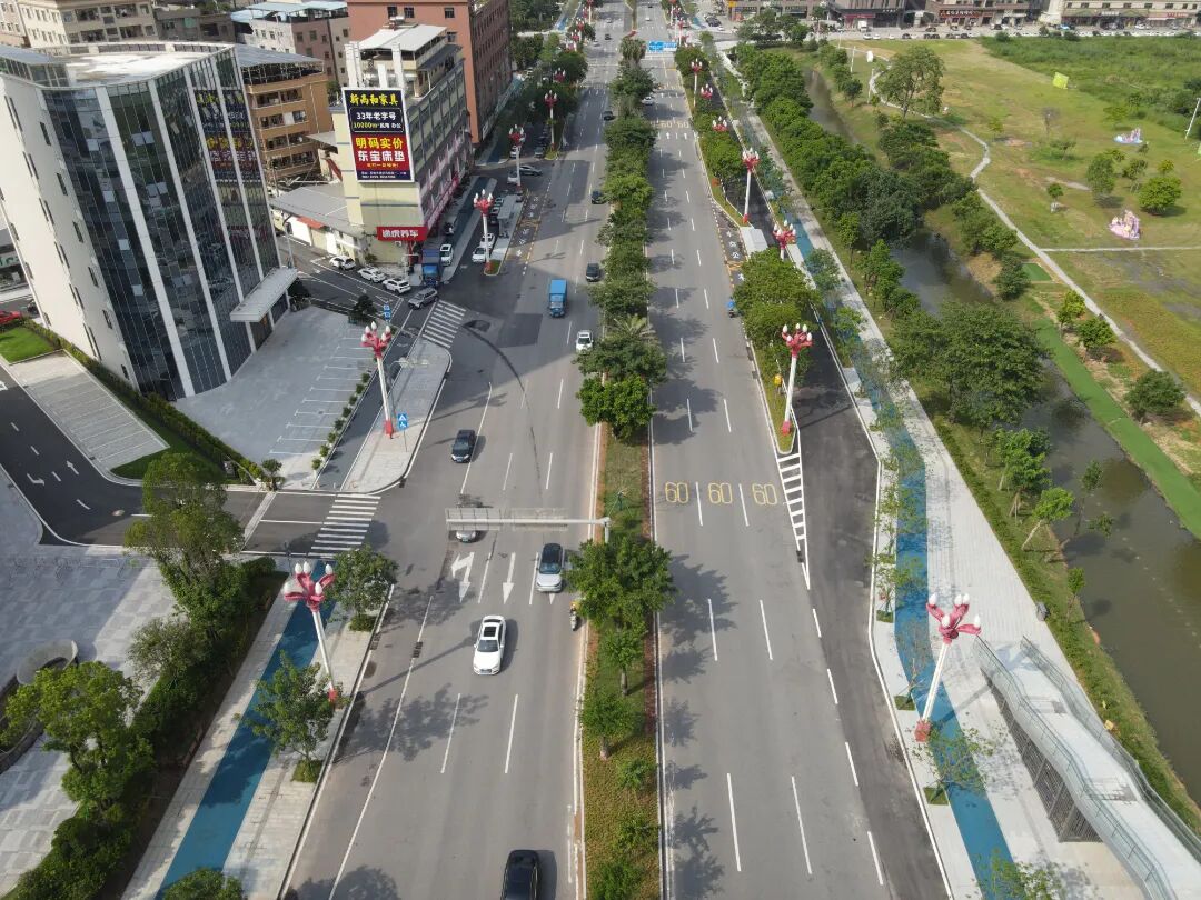 结合潮玩片区、黄家壆现代产业园等重点片区路网规划,石排镇有序推进10条总长19.8公里道路的交通综合整治28.65公里非机动车道建设,全面升级沿线慢行系统、市政配套及绿化景观,提升道路通行品质。重点攻坚龙腾路(里仁路至东园大道段)廊道一体化改造,通过统筹推进人行道与河道景观融合