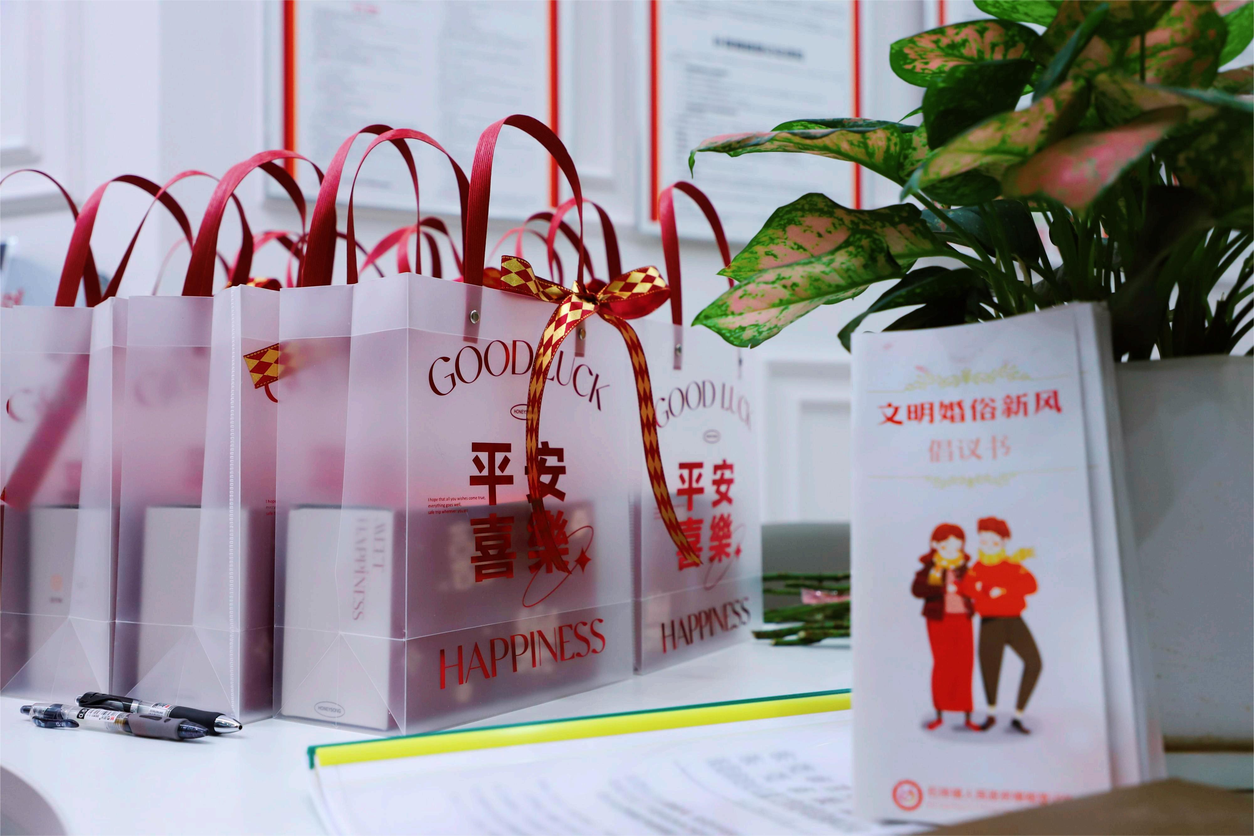 为应对2月14日婚姻登记小高峰,石排镇婚姻登记处开展“过浪漫佳节,树文明新风”婚俗改革活动,旨在弘扬“风雨同舟、相濡以沫、责任担当、互敬互爱”的婚姻理念,引导新人树立文明的婚俗观念,让新人感悟婚姻家庭所蕴含的温馨与责任。