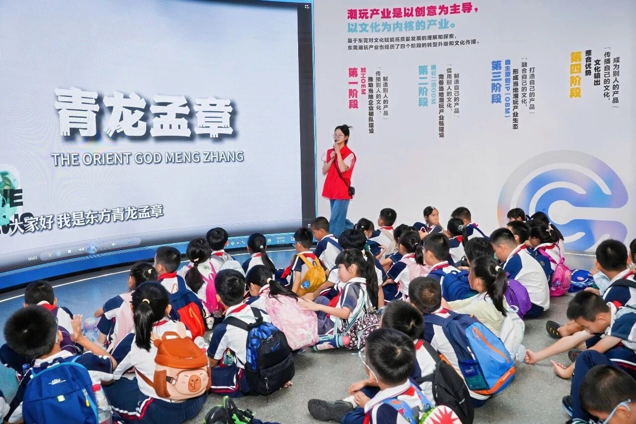 到了工业文化微展厅,讲解员带大家梳理东莞潮玩的发展路——从最初的加工制造,一步步走到自主原创,再到把中国潮玩推向海外。“我知道了全国大部分潮玩都产自东莞,为此我感觉非常的自豪!”学生杨洵逸的感言,道出了许多同学的心声。这场研学,不仅让他们理解了什么是“潮玩”,更点燃了身为东莞人的文化自信与产业自豪。
