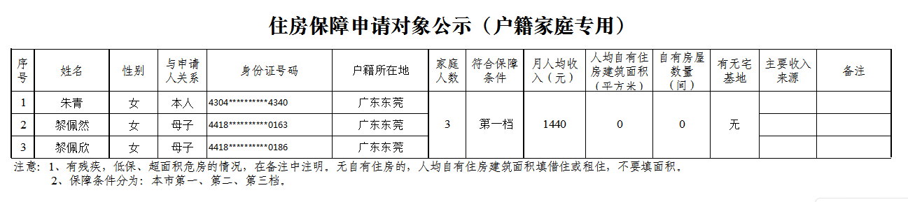 住房保障申请对象公示(户籍家庭专用)