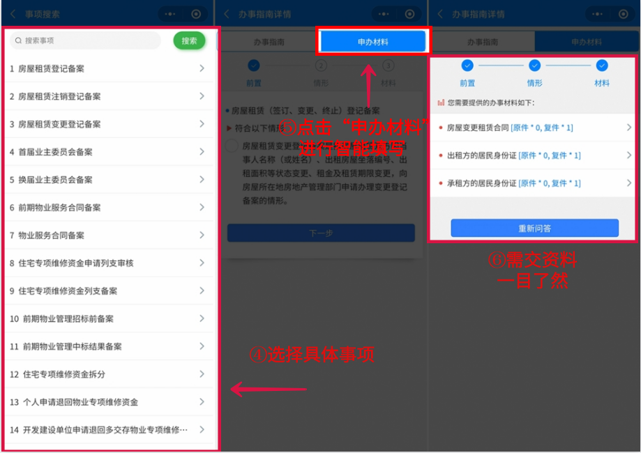* 在“石排政务”小程序进行智能情景答题,查看所需填交资料。
