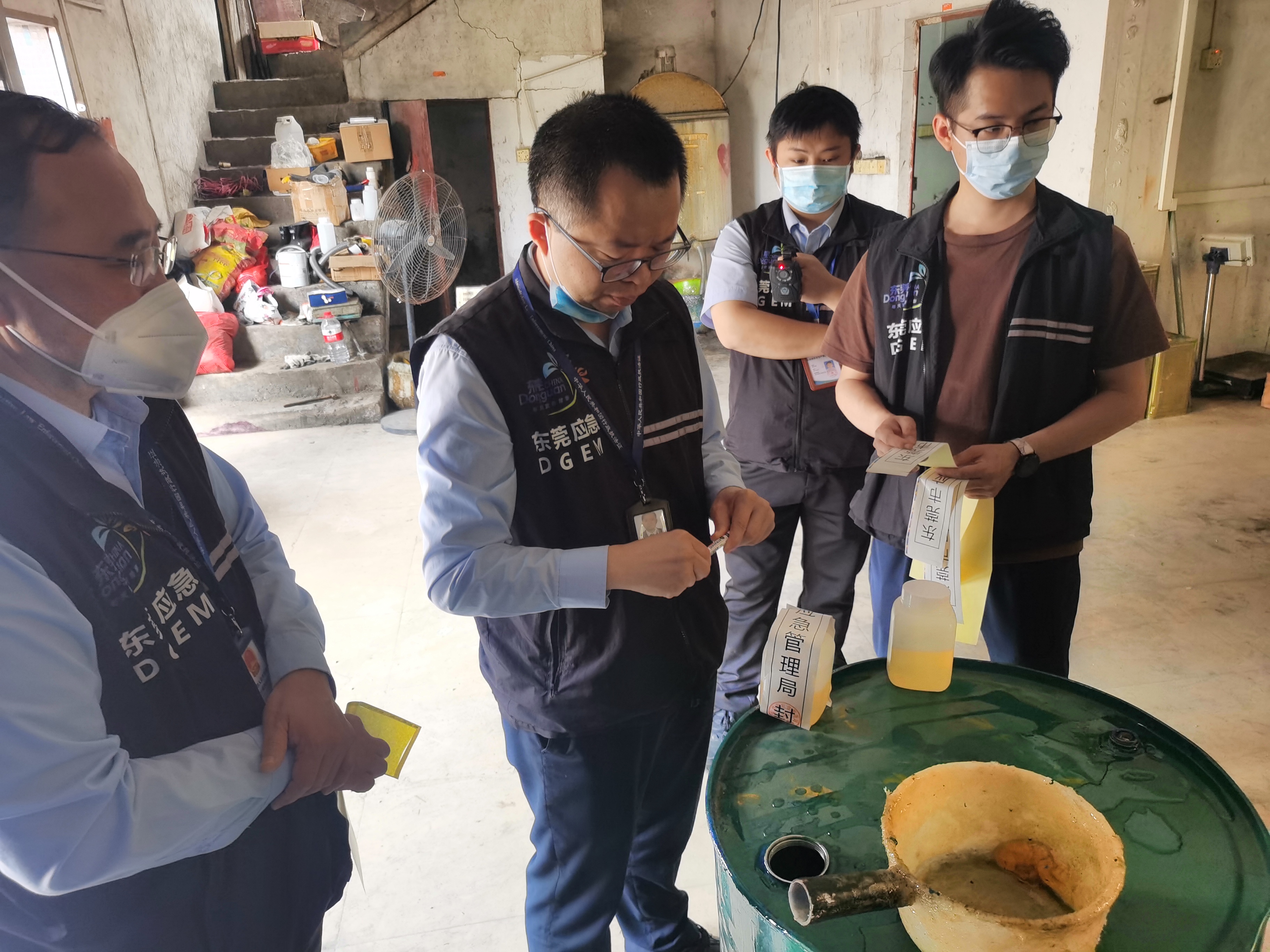 近日,东莞市应急管理局石排分局执法人员排查偏僻场所时发现一处违法生产危险化学品场所,执法人员现场责令该非法生产场所停止生产活动行为,没收违法所得,并对该场所负责人给予罚款10万元的行政处罚。