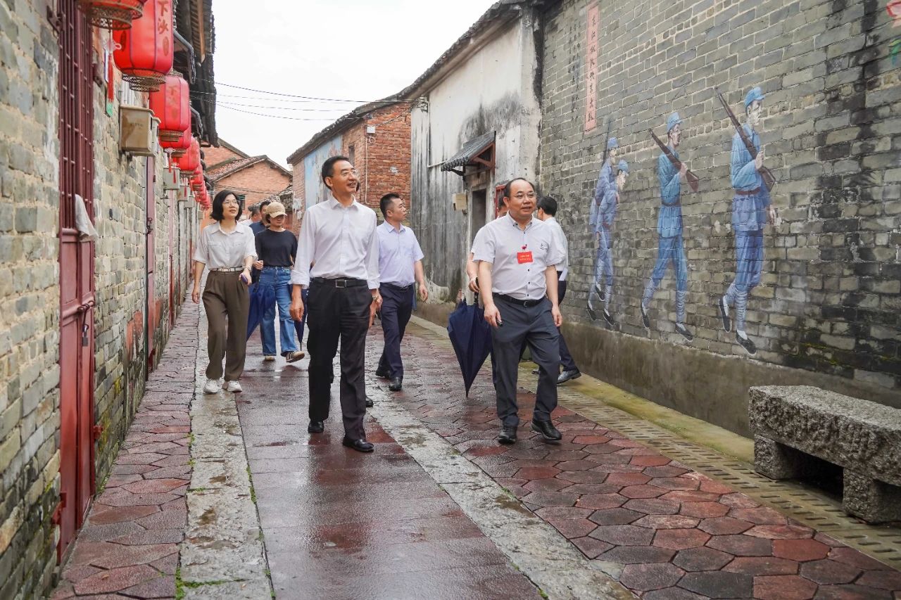 随后,调研组来到下沙村调研乡村人居环境建设工作情况。走访下沙村综合文化服务中心、乡忆街、红巷、村史馆等地,听取了该村负责人工作情况汇报后,调研组对下沙村在提高人居环境质量、强化特色精品村塑造、提升“红色颜值”、乡村绿化美化等方面取得的建设成果予以充分肯定,勉励该村持续深入推进“百千万工程”,把革命老区文化和村居环境融为一体,打造个性鲜明的特色示范村,成为下沙人共同的红色印象。同时要抓好产业升级布局,壮大农村集体经济,不断提升村民的获得感、幸福感,助力“百千万工程”高质量发展。