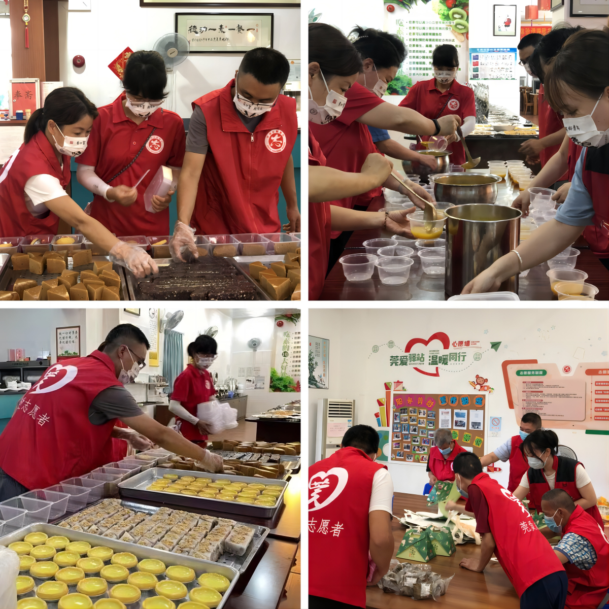 活动前期,社工通过“爱心包认购”方式,邀请社会爱心人士奉献爱心。活动当天,社工、莞爱志愿者一起在慈善爱心驿站分装物资,大家分工合作:装糕点、装南瓜羹、折盒子、装粽子等,很快便将76份“端午爱心包”打包好。
