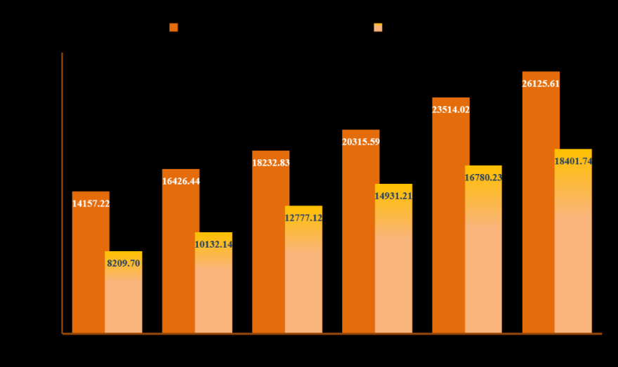 年末金融机构各项本外币存款余额26125.61亿元,比上年末增长11.1%。其中,住户存款余额10153.62亿元,增长11.9%。各项本外币贷款余额18401.74亿元,增长9.7%。年末制造业贷款余额、普惠小微企业贷款余额分别增长23.0%、20.9%。
