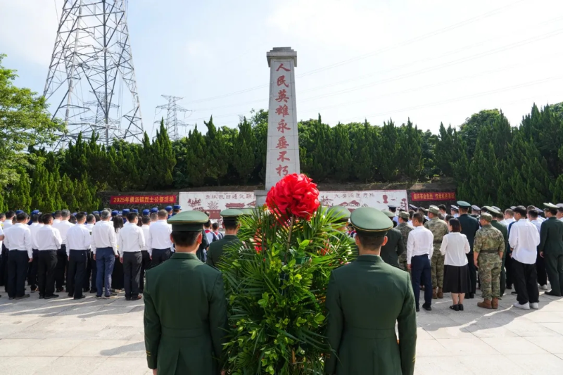 横沥镇在田饶步革命烈士纪念碑前举行公祭活动,镇领导班子成员,各相关部门负责人,各村(社区)党组织书记,军烈属、老战士、先进党员、老同志代表,各民主党派、工商联及无党派人士代表,工人、农民、市民、学生、公安干警、参战退役军人代表以及2025年退役士兵等参加公祭活动。